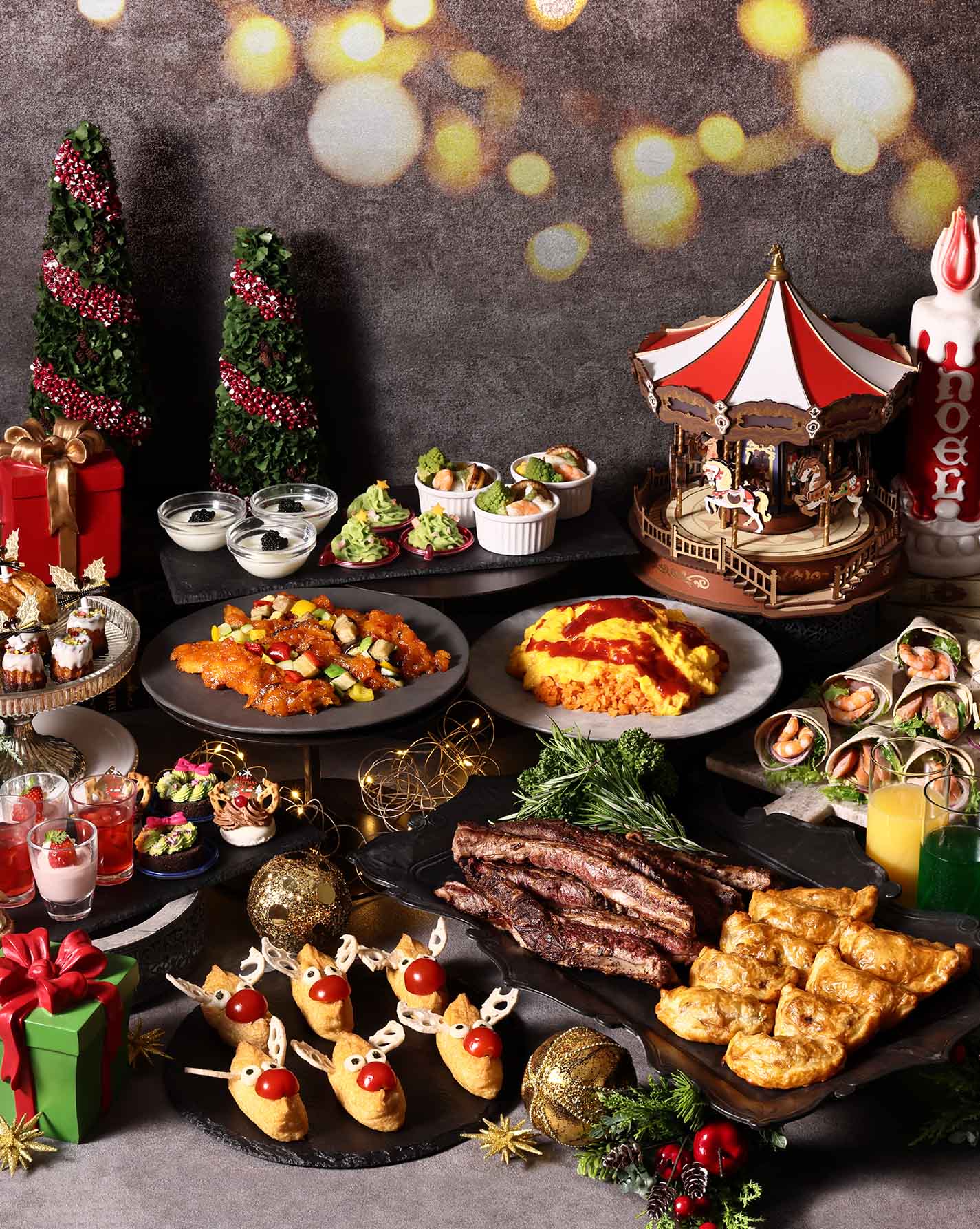 ポートダイニング リコリコは「Treasure Hunting」をコンセプトに、航海する船や島をイメージしたレストラン。エントランスには航海図と煌めく星座、金色に輝くビュッフェカウンターには宝物に見立てた料理が並びます。「食の都 大阪」にふさわしく、“食の楽しさ”を盛り込んだ、季節感あふれる料理をお楽しみください。