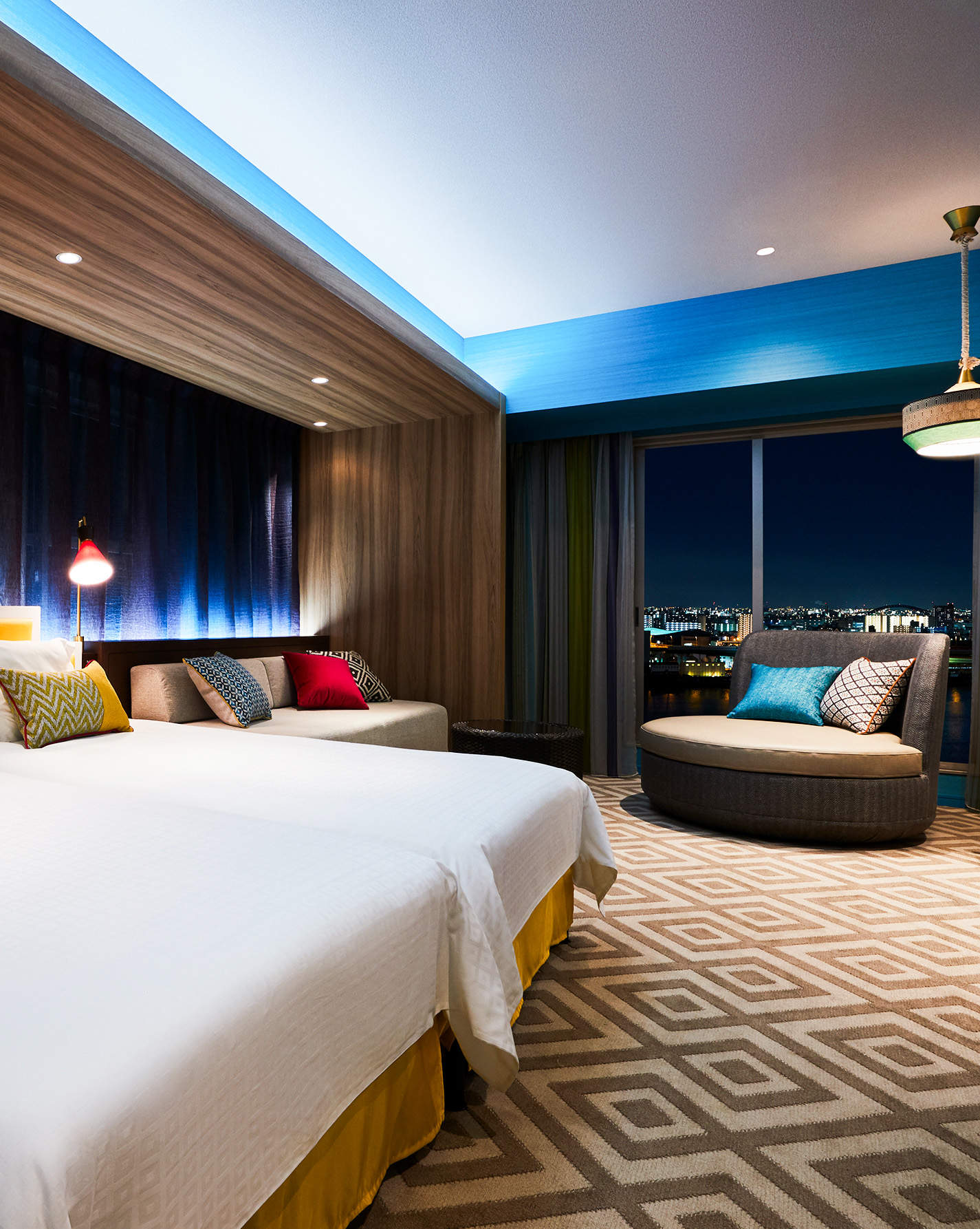 ご家族、グループ、女子会など用途に合わせたお部屋タイプを多数ご用意。もちろん、オフィシャルホテルならではの人気キャラクターとコラボした客室なども大きな魅力。多彩なタイプの客室から、ご自分にぴったりのお部屋をお探しください。
