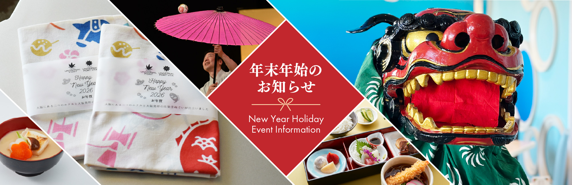 今年の手ぬぐいデザインは、「初遊び」をテーマに、日本の伝統的なお正月遊びや縁起物、そして2026年の干支である「午」を取り入れました。当ホテルのご宿泊者さまにはユニバーサル・スタジオ・ジャパンへお出かけになるゲストが多いことから、「めでたい新年の始まりに、思いきり“遊び”を楽しむ」という想いをデザインにも反映しています。
