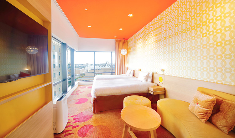 35㎡のパークサイドに面した角部屋です。窓からは真正面にパークがご覧いただけます。デュベ仕様のお布団とふかふかのマットレスで、心地よい寝心地を提供いたします。さらにバス・トイレセパレートで快適にお過ごしいただけます。