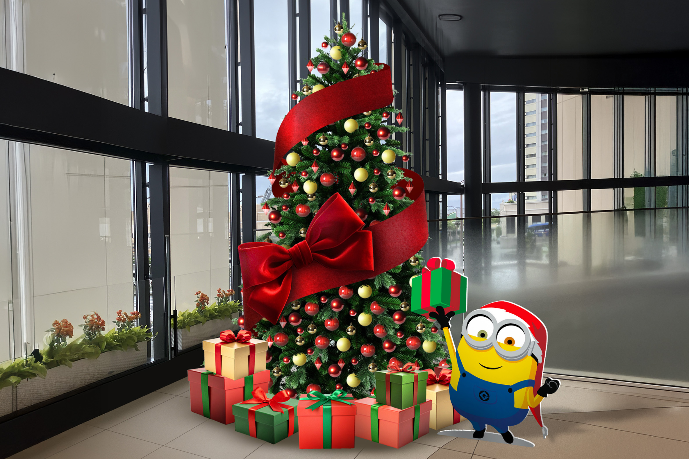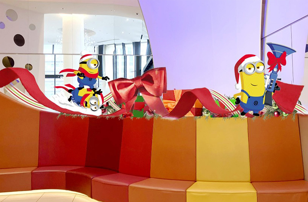 ユニバーサル・スタジオ・ジャパンの人気者ミニオンたちがにぎやかにデコレーション!期間限定の特別な装飾でクリスマス気分をお楽しみください。
