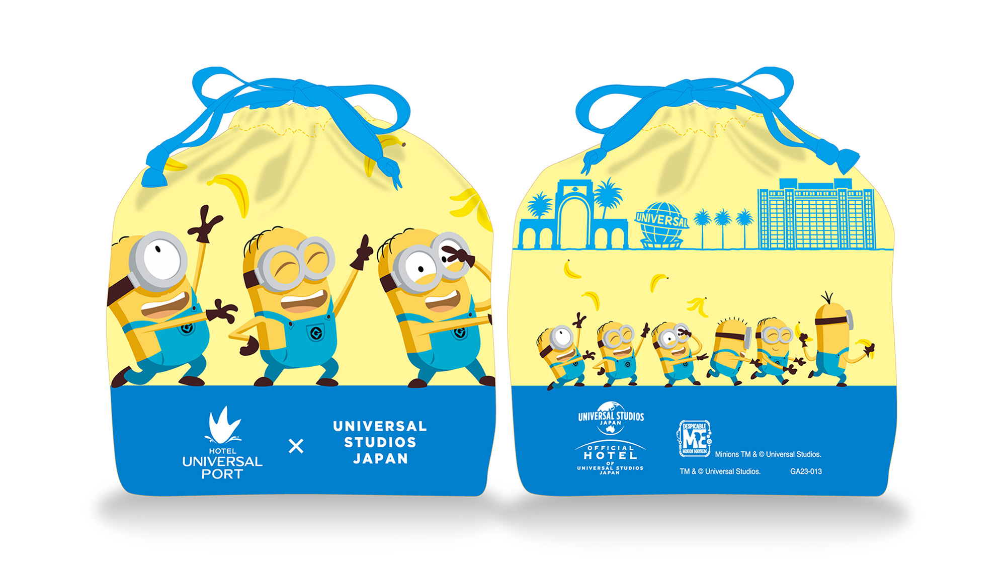 ミニオン・パークで会える、イルミネーションのミニオンがデザインされた、ここでしか手に入らない「ミニオン・オリジナル巾着」!