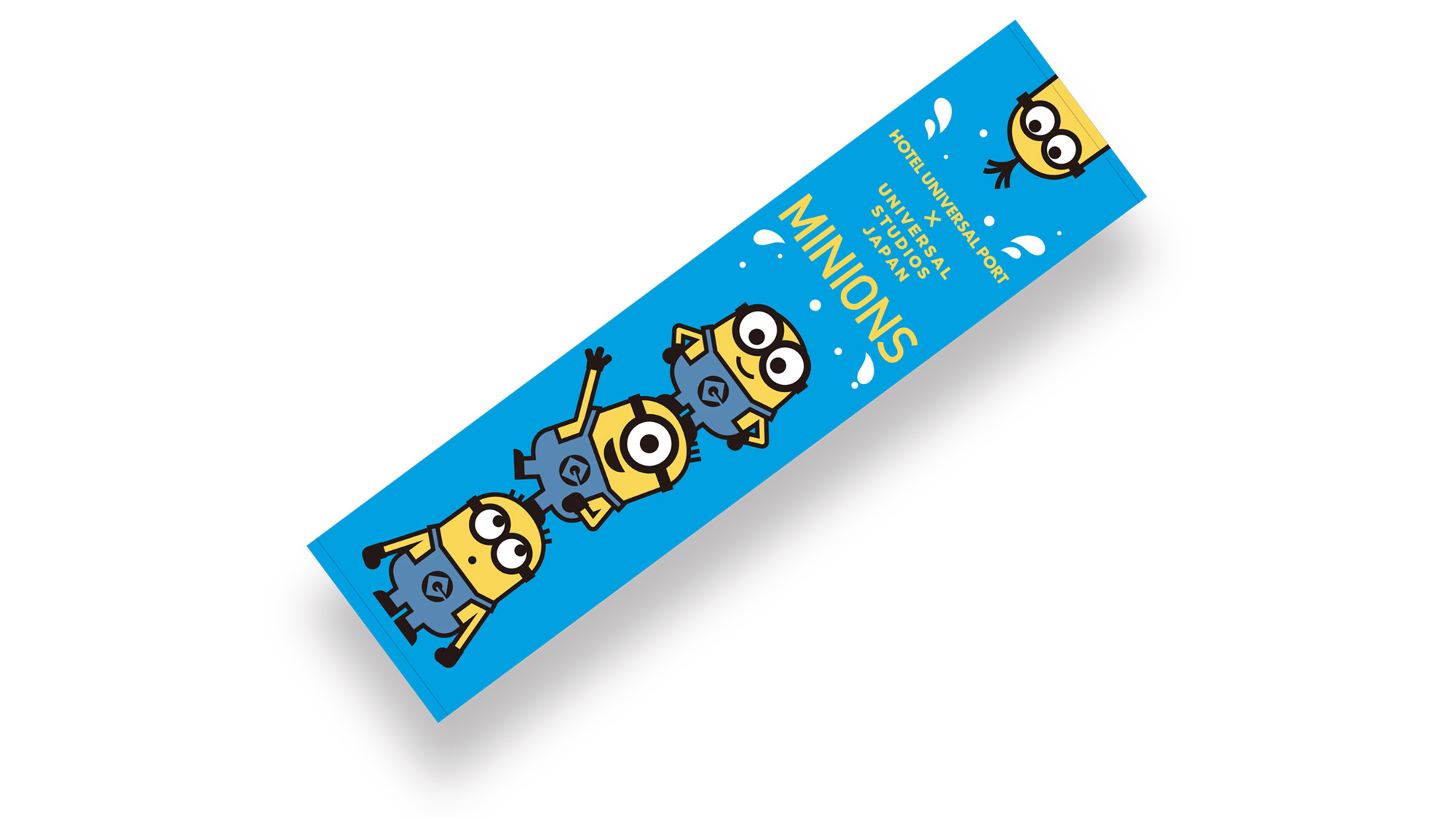 ミニオン・パークで会える、イルミネーションのミニオンがデザインされた、ここでしか手に入らない「ミニオン・オリジナル・マフラータオル」!