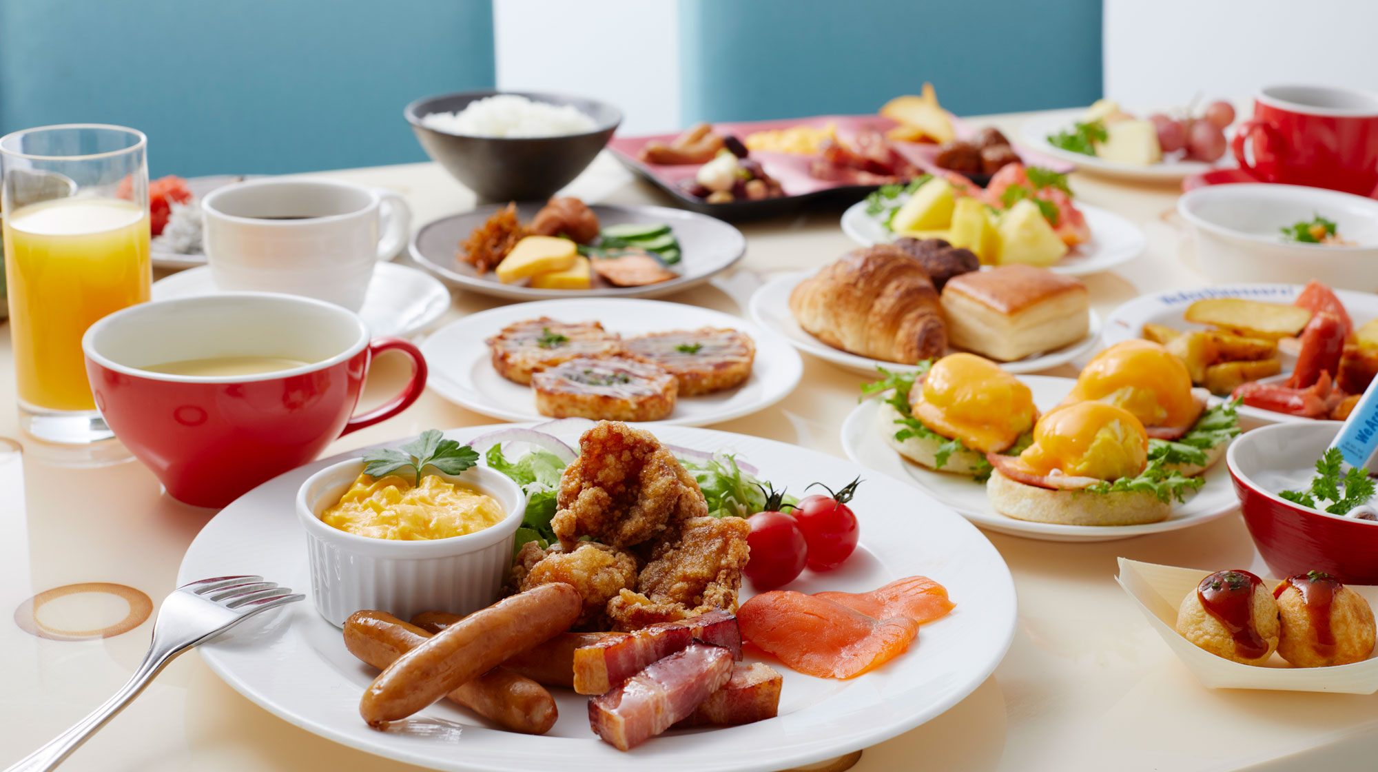 ホテルでの楽しみのひとつでもある朝食は、ビュッフェを楽しめる「リコリコ」で。大阪グルメを含む約70種のバラエティ豊かなメニューがいっぱい。SNS映えする写真を撮って、みんなにも自慢しちゃお。