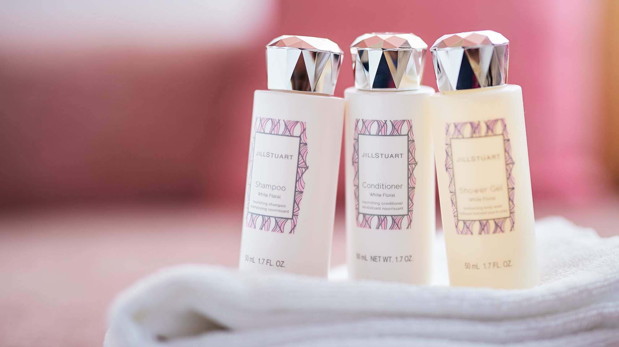 就寝前には、JILL STUARTの「リラックス バスタイムセット」といっしょに優雅なバスタイムを満喫。お部屋には、美顏スチーマーもあるので、しっかりとケアして、明日に備えておやすみなさい。