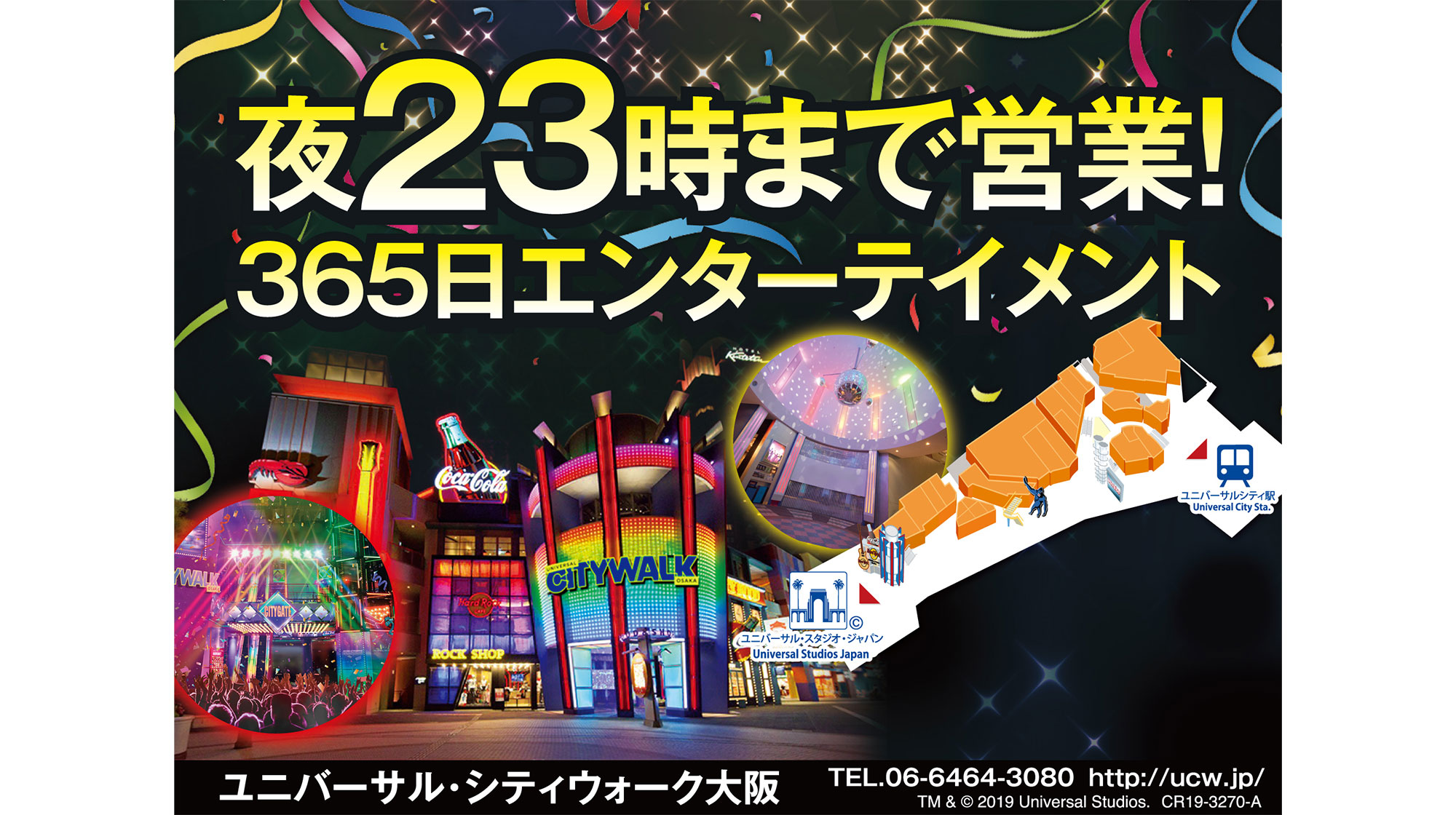 ホテルから数分歩くとエンターテイメント商業施設「ユニバーサル・シティウォーク大阪」が。歩くだけでワクワクするきらびやかな街並みに、思わず時間を忘れちゃいそう。
