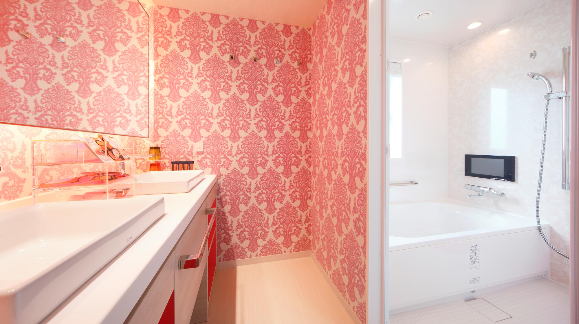 盛り上がった女子トークの後は、ゆったりとしたバスタイム。浴室内TVやボディシャワー・オーバーヘッドシャワー、「JILL STUART」のバスアメニティで、いつもより楽しいバスタイムが過ごせそう。