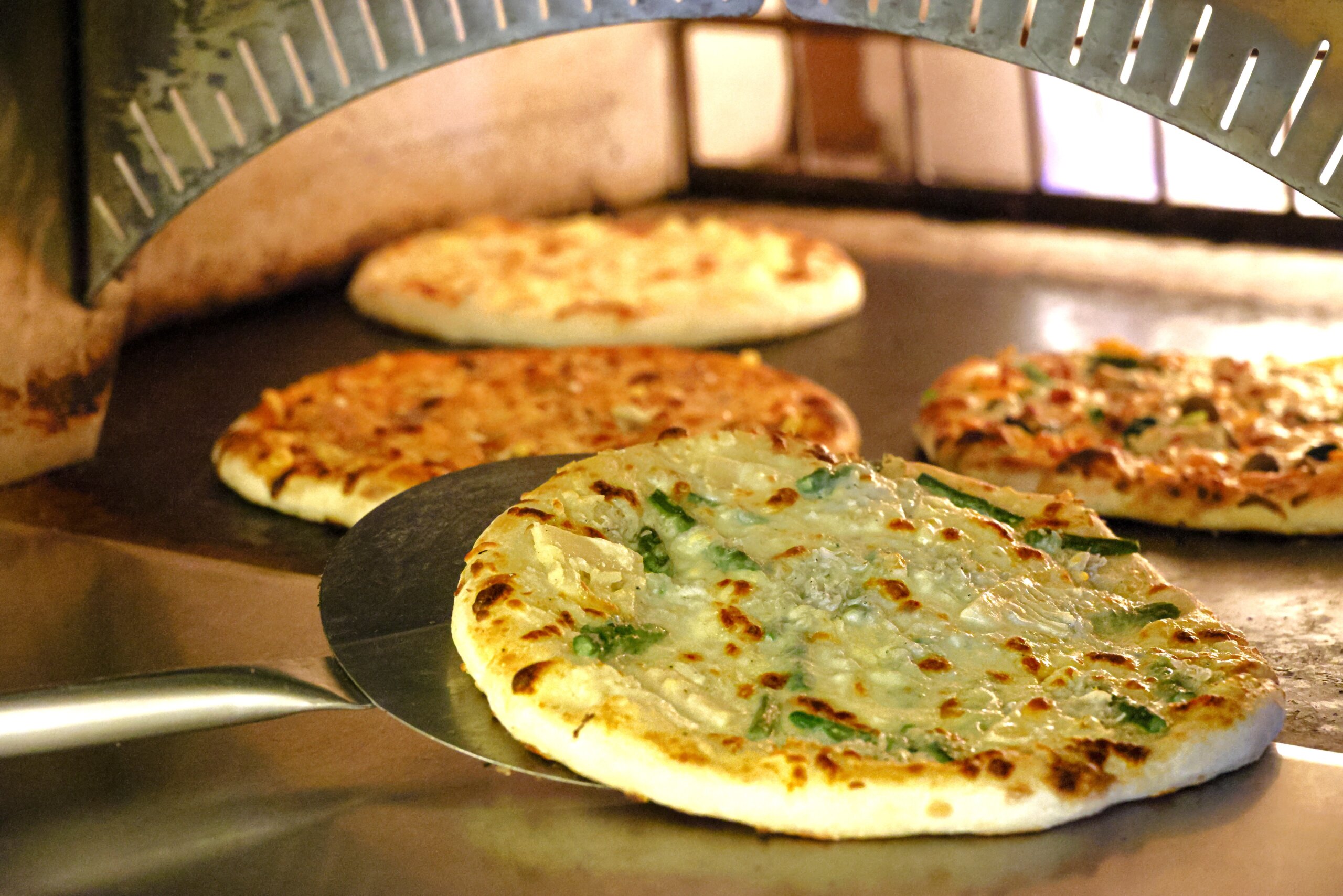 店内中央にある石窯から、焼きたての朝食ピッツァをご提供!