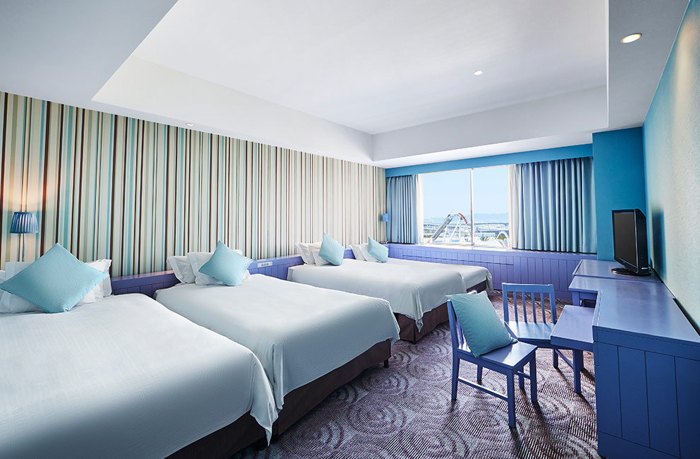 最大4名様利用(40㎡)のファミリールームは、見ているだけでも楽しくなるインテリアで、お子さまが楽しめる事ができます。パークで楽しんだ余韻をそのままにお過ごしいただけます。